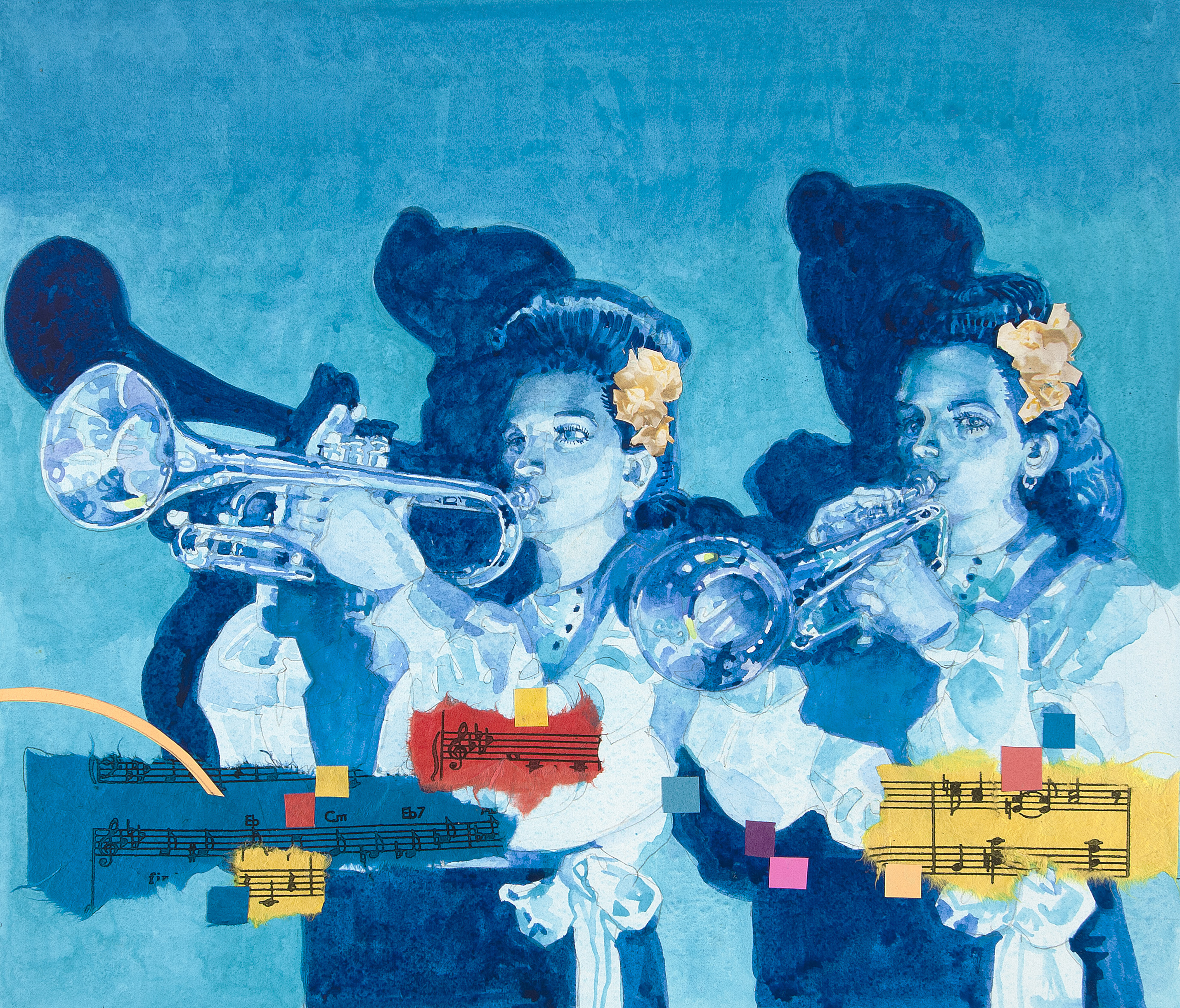Jerry Pinkney, Illustration for Sweethearts of Rhythm: The Story of the Greatest All-Girl Swing Band in the World by Marilyn Nelson (Dial Books). Courtesy of Gloria Jean Pinkney. © 2009 Jerry Pinkney.
