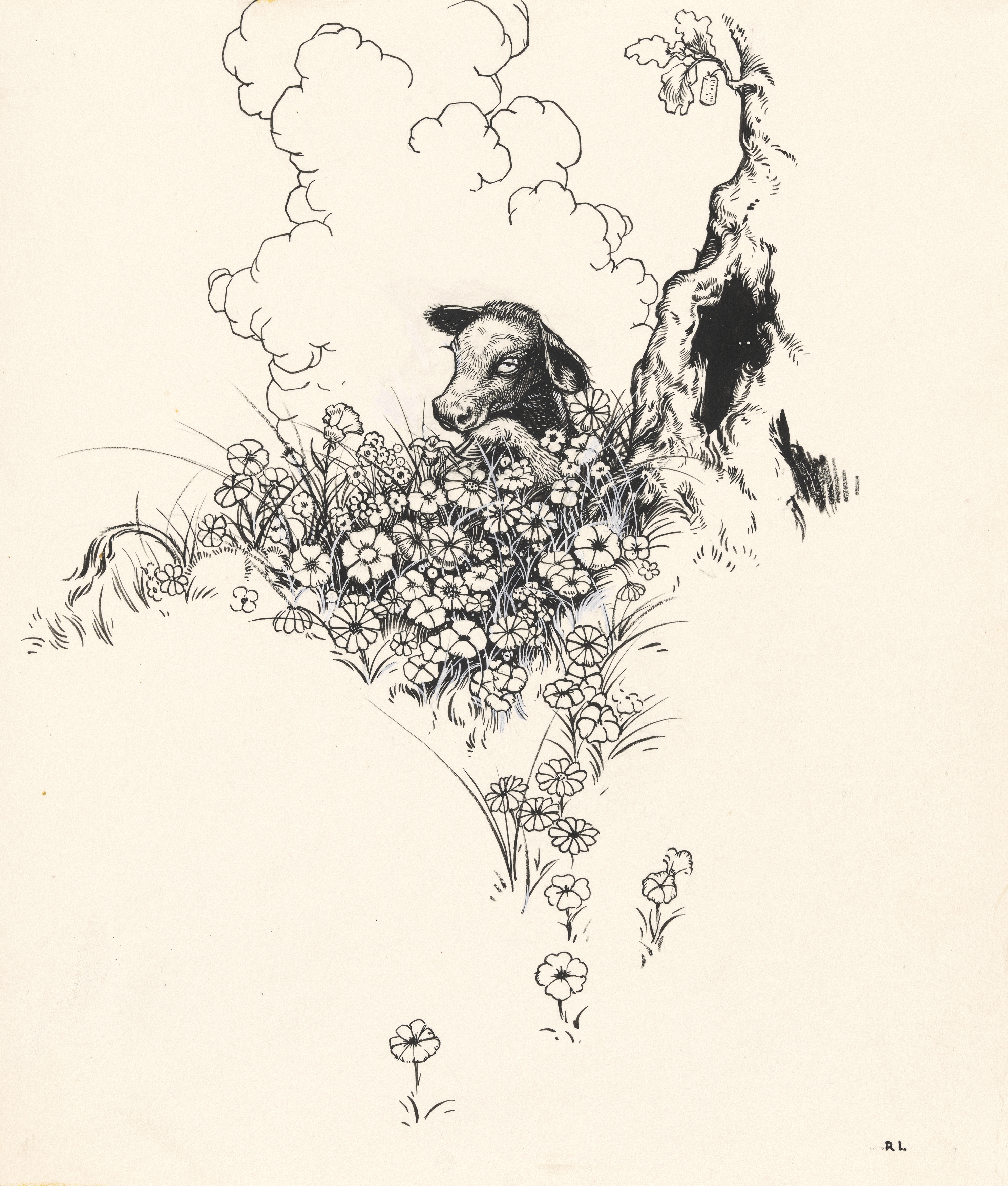 Robert Lawson, Illustration for The Story of Ferdinand, by Munro Leaf (Viking). © 1936 Robert Lawson.