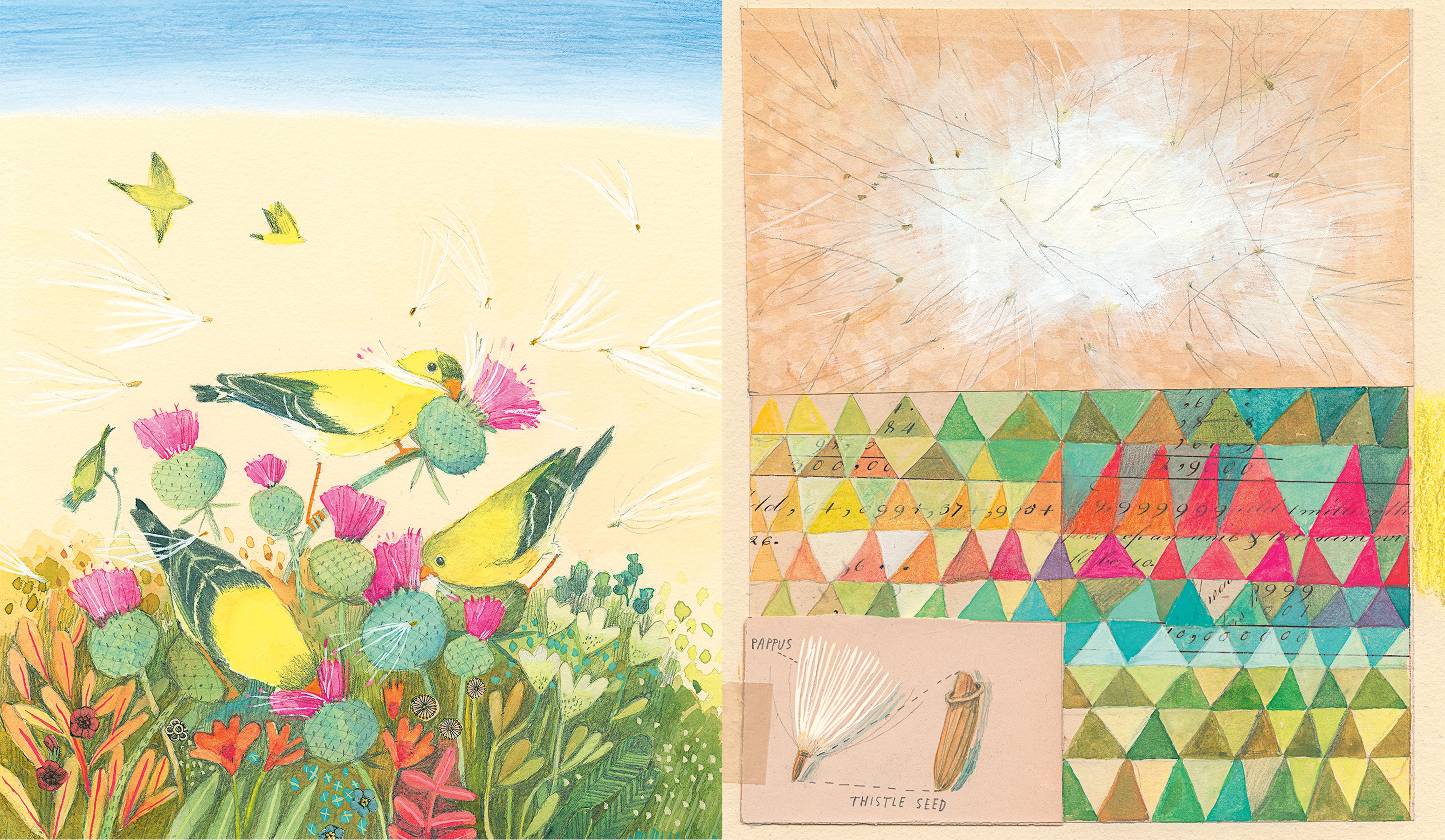Melissa Sweet, Artwork for Goldfinches by Mary Oliver (Viking Books for Young Readers). © 2026 Melissa Sweet