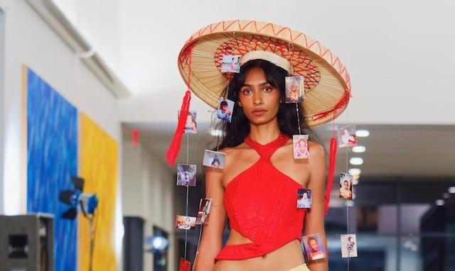 Model from the UMass Fashion Organization walking the runway at The Carle