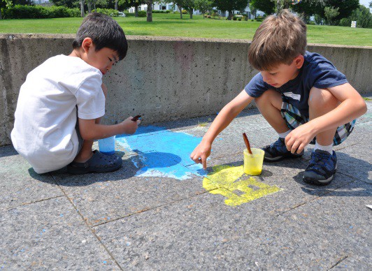 The rain over the weekend washed most of our bug playground away, but I’m glad we captured the fun process on camera. Thank you to two of The Art Studio’s Summer Interns, Beth Caronna and Camille Brenner, for researching the chalk paint recipe, which inspired this project, and Emma Rodrigue for helping me compile the photos for this post!