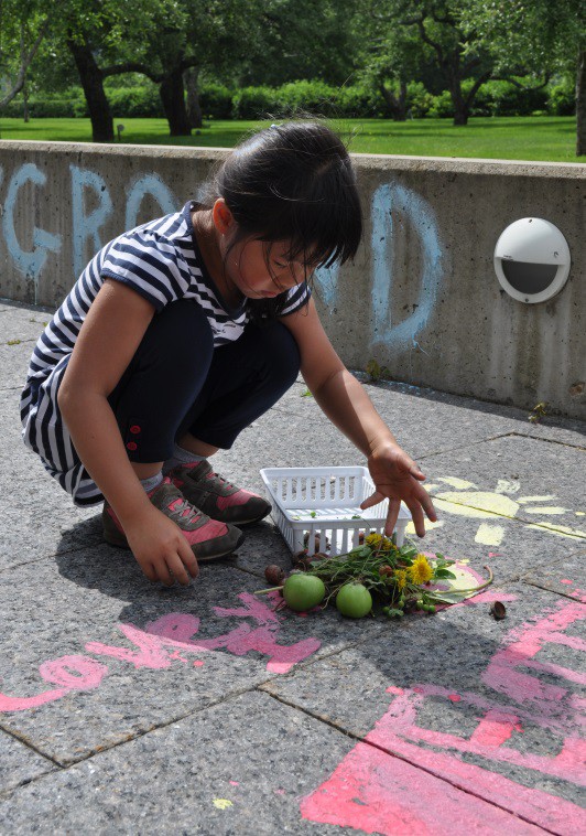 Later that day we walked the Museum’s grounds to collect natural materials to add to the playgrounds. Before the walk I asked the kids, what kinds of natural materials could we collect for bugs to play with?