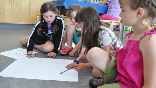 With paper and drawing tools the kids mapped out what their playgrounds would look like.