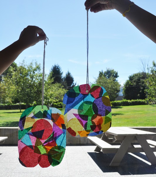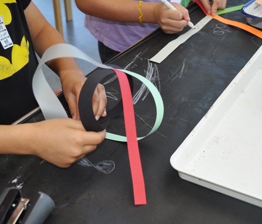 Here are some guests making 3D dots with skinny strips of construction paper and staplers.