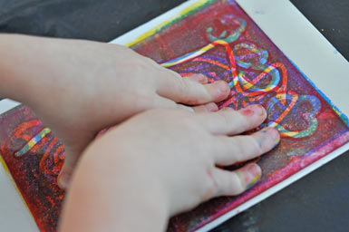 I asked them to make at least three complete prints during the 45-minutes we had for this project. We easily could have continued for an hour (or more!) since the different steps kept the kids really engaged. Everyone had a handful of colorful prints to take home at the end of the day.