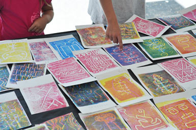 The last step was to return their plexiglass plate to a tray to be reused, and write their name on their print and leave it to dry. One of the best things about this process is how quickly the work dries on a table or rack.